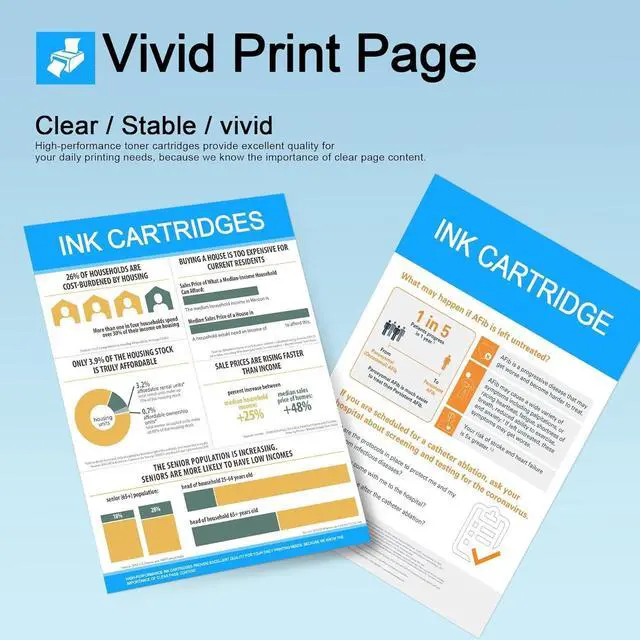 The cartridge has excellent performance, accurately matched with the printer, and is simple and convenient to install.: clear black text printing and bright color output; multi-layer packaging, no damage and no leakage