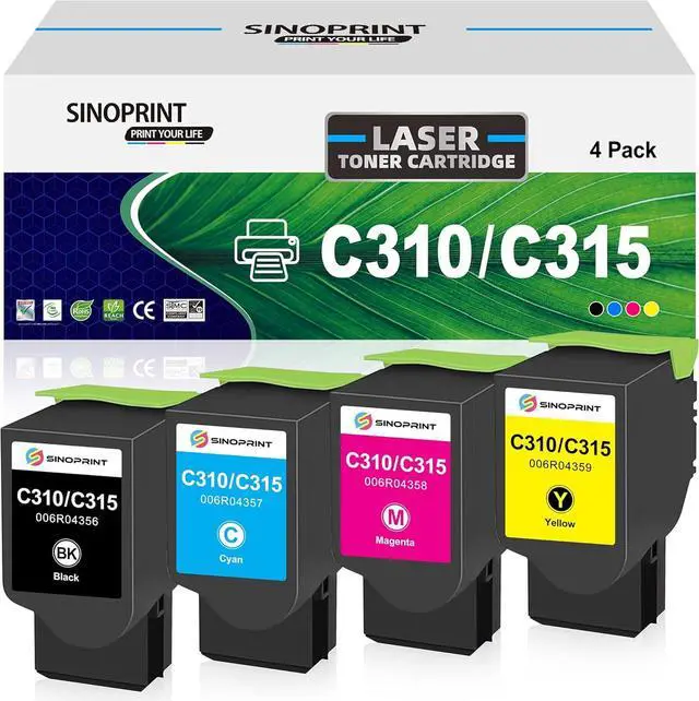 Get it by Sunday, Jul 20Get it by Sunday, Jul 20Get it by Sunday, Jul 20Get it by Monday, Jul 21Customer ratings4.54.5 out of 5 stars83.43.4 out of 5 stars535.05.0 out of 5 stars14.54.5 out of 5 stars124.44.4 out of 5 stars34.24.2 out of 5 stars25Sold by SINOPRINT EKOFFICE MINGCH Sunshine office StarTech Office Supplies Canada Direct - Often Ships Same Day!brand SINOPRINT TOPRINT PTONPR FANSHENG LCL Xeroxcolour Black Cyan Magenta Yellow Black Cyan, Magenta, Yellow Black, Cyan, Magenta, Yellow Black Black Cyan Magenta Yellow Blackincluded components Magnetic Mount Black Toner (1x), Cyan Toner (1x), Magenta Toner (1x), Yellow Toner (1x) Toner Cartridge Toner Cartridgecompatible devices Printer Printer C310 C310DNI C310DNIM C315 Printer Printer Printer Xerox C310 Color Printer