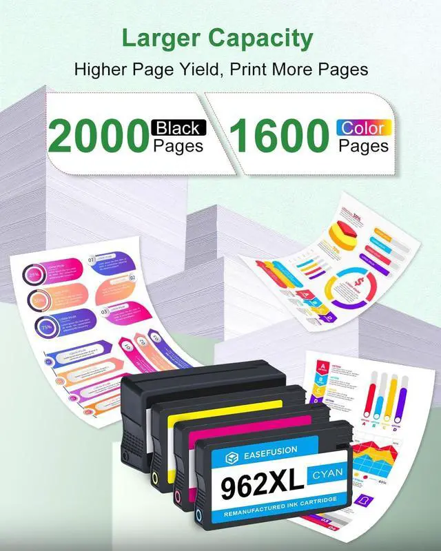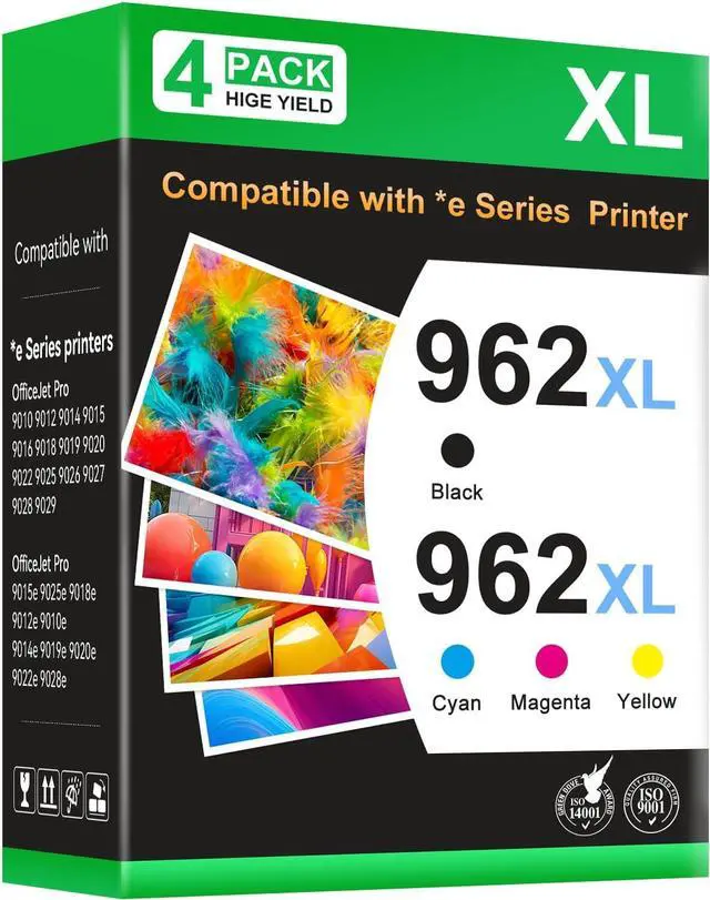 962XL Combo Pack Ink Cartridges Replacement Compatible for HP962XL HP962 HP Ink 962 XL Works with OfficeJet Pro 9010e 9012e 9014e 9015e 9018e 9019e 9020e 9022e 9025e 9028e Printers, 962XL Compatible *E Series Printers: Compatible with HP OfficeJet Pro 9010e 9012e 9014e 9015e 9016e 9018e 9019e 9020e 9022e 9025e 9026e 9027e 9028e 9029e printers; 962XL Compatible Printers: Compatible with HP OfficeJet Pro 9010 9012 9014 9015 9016 9018 9019 9020 9022 9025 9026 9027 9028 9029 printers