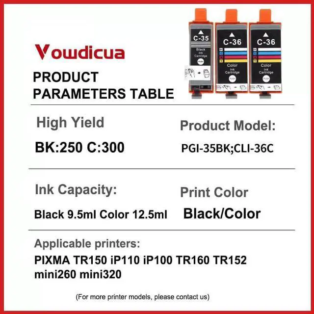 3 Pack PGI-35 CLI-36 Ink Cartridge (2Black, 1Color)