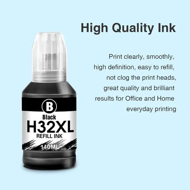 Reliable Performance: The Compatible 32xl ink refill bottle is subjected to rigorous installation tests at the factory to ensure High compatibility with HP Smart Tank printer.