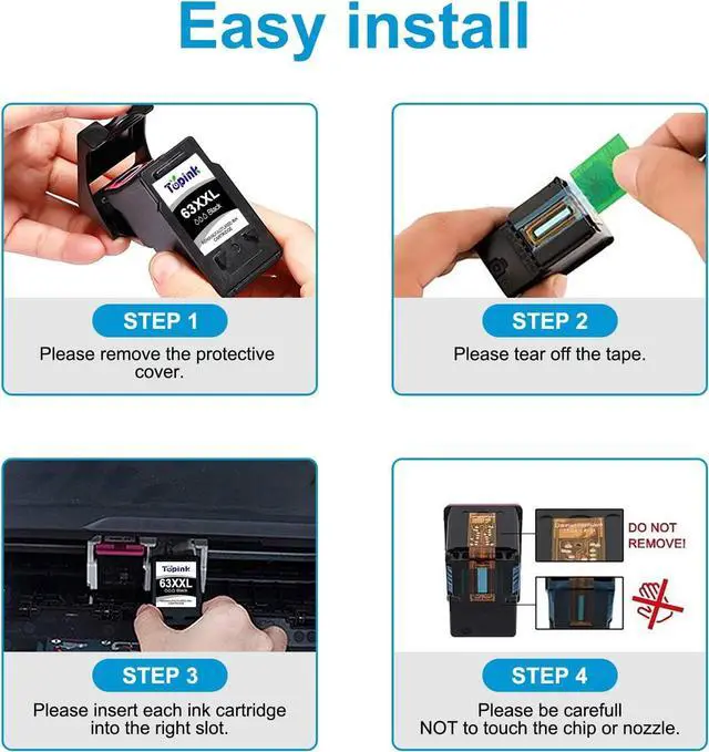 For HP Printer Ink 63 XXL Easy to Install Simple three-step installation for hp 63 inkcartridges, quicker recognition after installation, no additional steps required
