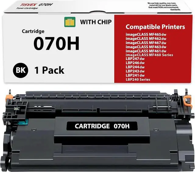 Includes:1 pack of compatible 070H Black toner cartridge (with chips).