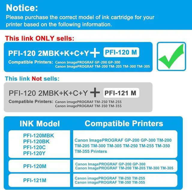 • Compatible PrintersReplacement for Canon imagePROGRAF GP-200, GP-300,TM-200, TM-200 MFP L24ei, TM-205, TM-205 MFP L24ei, TM-300, TM-300 MFP L36ei, TM-300 MFP T36, TM-300 MFP T36 AiO, TM-305, TM-305 MFP L36ei, TM-305 MFP T36, TM-305 MFP T36 AiO series Large format printers