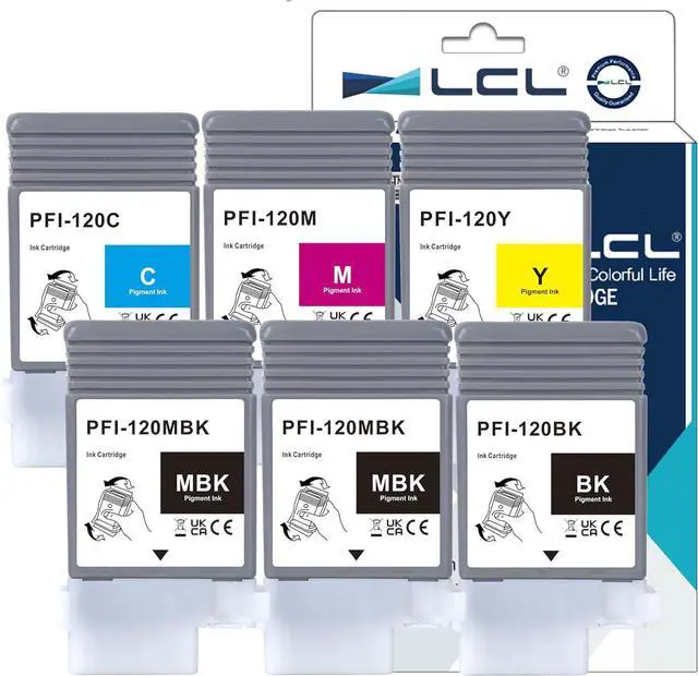 LCL PFI-120 PFI120 130-ml Ink Cartridge Replacement for Canon PFI-120MBK PFI-120BK PFI-120C PFI-120M PFI-120Y for Canon ImagePROGRAF GP-200 GP-300 TM-200 TM-205 TM-300 TM-305 (6-Pack 2MBK+KCMY)