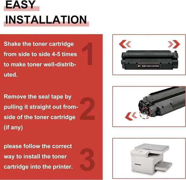 Our S35 Toner Each of the cartridge has been methodically tested to ensure full working condition and a superior print quality;It is precisely designed to the printer, no powder leakage, longer life and durable