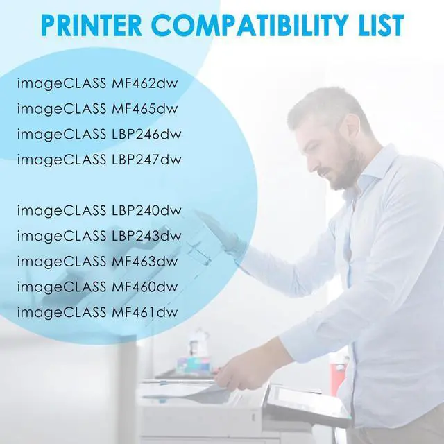 Printer Compatibility: These toner cartridges are fully compatible for Canon imageCLASS MF462dw MF465dw LBP246dw LBP247dw LBP240dw LBP243dw MF463dw MF460dw MF461dw Printer.