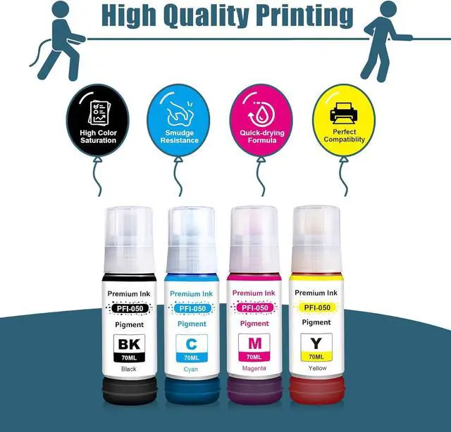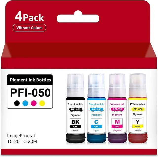 Mutikor PFI-050 Set Compatible Pigment Ink Tank 70ML Replacement for Can PFI050 Black and Color Ink Bottle for ImagePrograf TC-20 TC-20M Printers (4-Pack, Black Cyan Magenta Yellow)