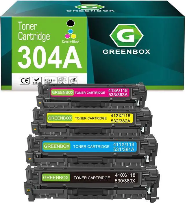 GREENBOX Remanufactured Replacement for HP 304A Canon 118 Toner Cartridge 4 Pack.