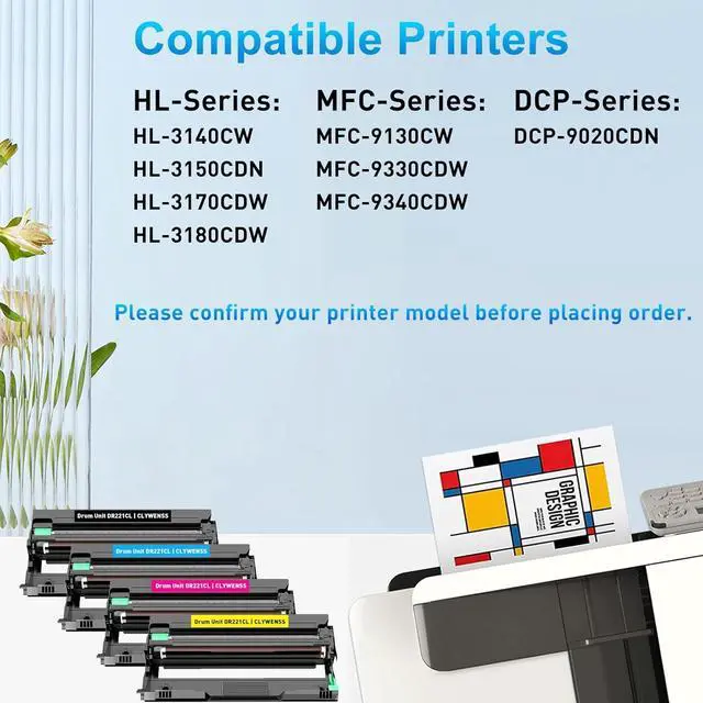 Product Name: CLYWENSS DR221CL Drum Unit Set Replacement for Brother DR221CL BK DR-221CL, 4/Pack DR221CL.