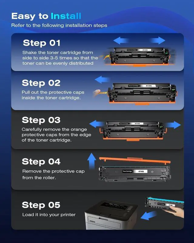 Reliable quality : All of our 414A/W2020A toner cartridge undergoes rigorous quality inspection and testing to ensure premium print colors, and uses the latest chips to ensure the printer's recognition efficiency.