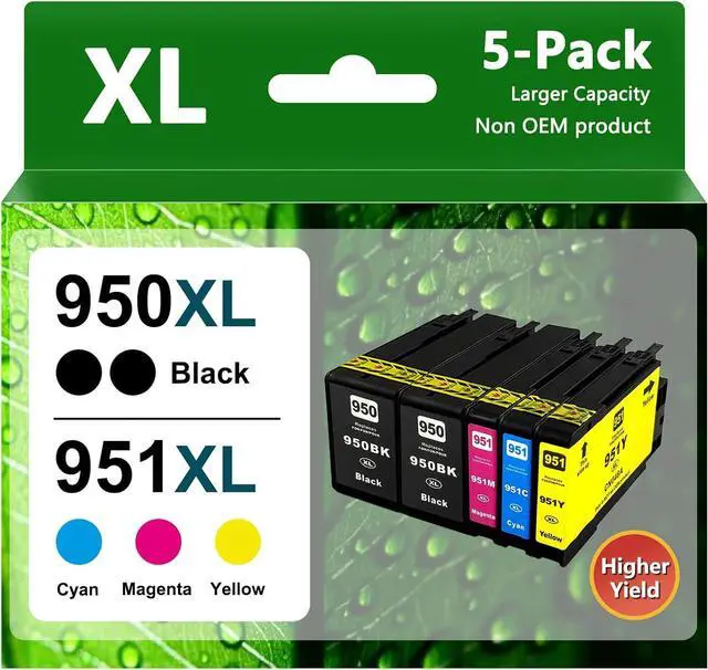 Package: The package contains a 5 - pack of 950xl and 951xl ink cartridges combo, with 2 x 950xl black, 1 x 951xl cyan, 1 x 951xl magenta, and 1 x 951xl yellow.