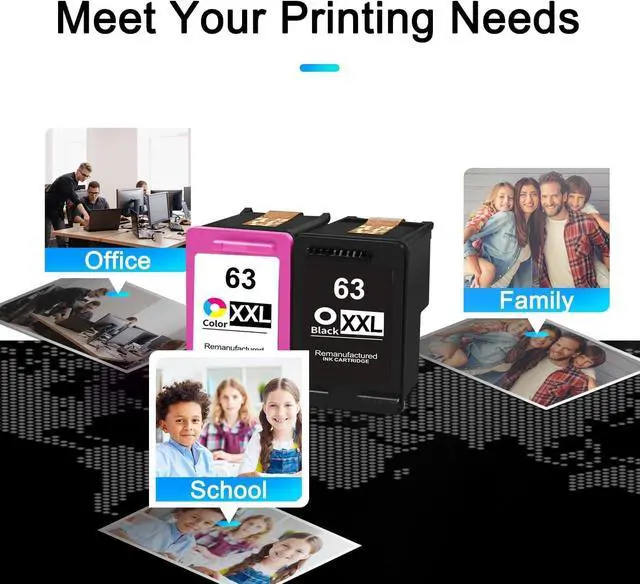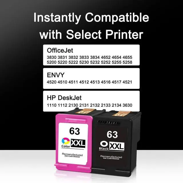 Box Includes: 2 Packs Remanufactured 63xxl ink cartridges -1 Black + 1 Tri-Color