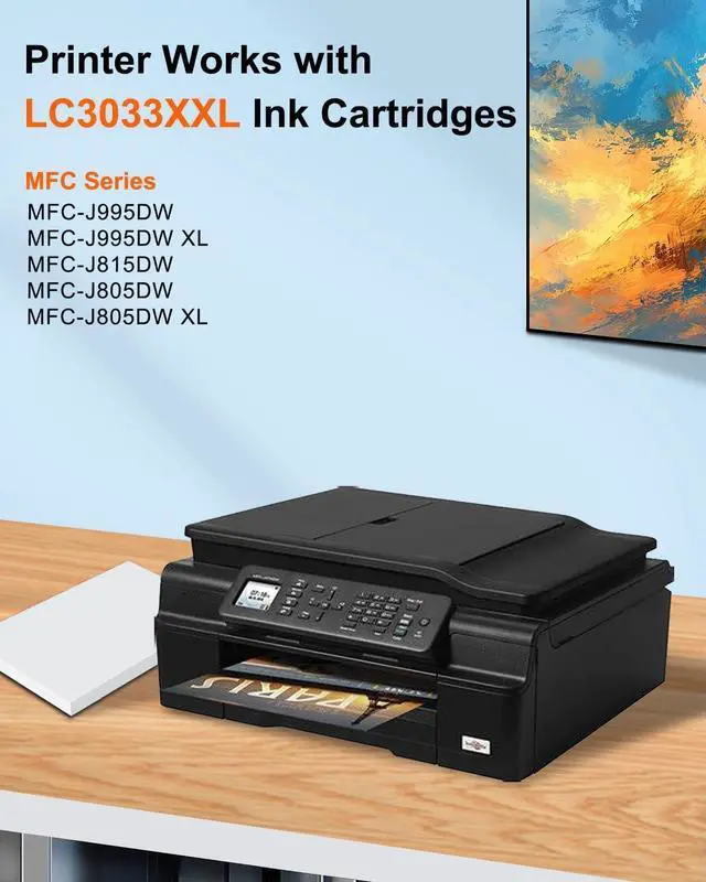Compatible Printers: The LC3033 XXL Ink Cartridges printers is compatible with MFC-J995DW, MFC-J995DW XL, MFC-J815DW, MFC-J805DW, MFC-J805DW XL printers