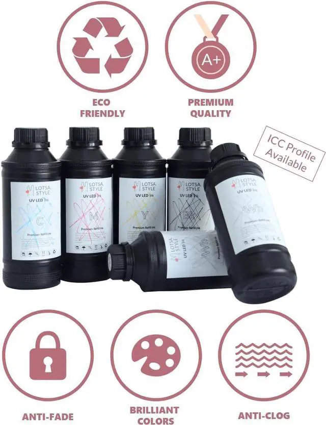 Lotsa Style Premium Ultraviolet UV LED Ink Refill has the latest UV ink technology for printing bright and vivid colors. They have smooth textures and anti-clog properties.