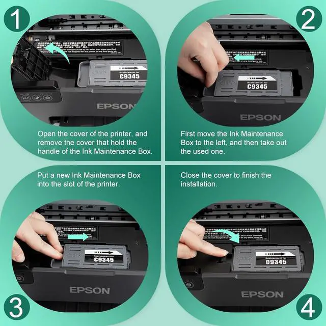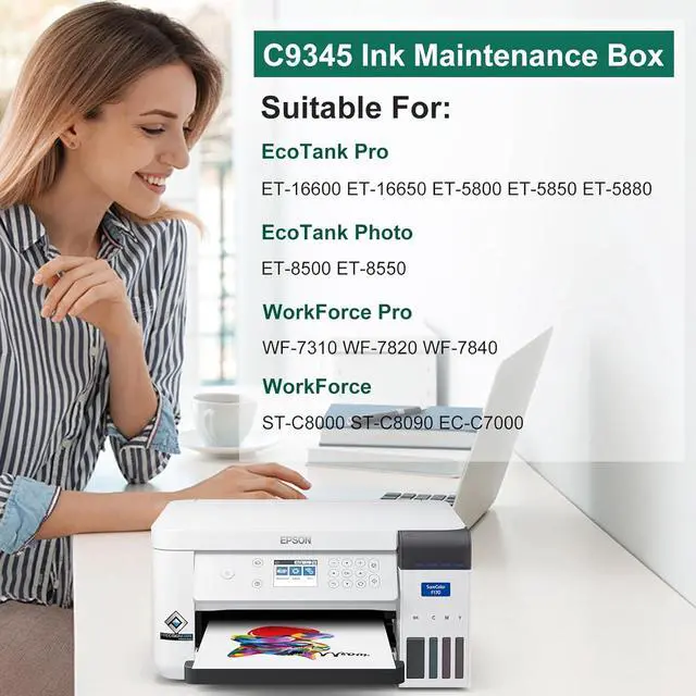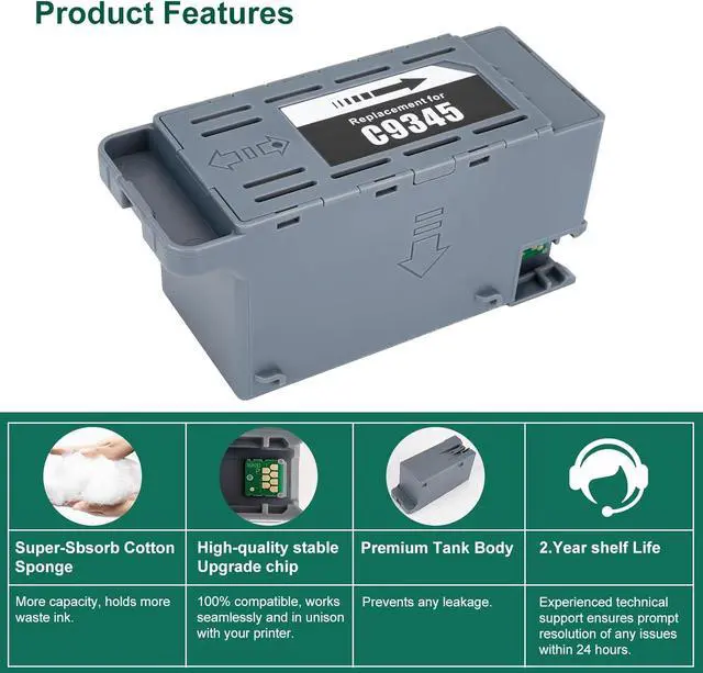 Compatible with PrintersC9345 Maintenance Box Tank is 100% Compatible for EP Printer: WF-7840 WF-M4119 WF-M4619 ET-8550 WF-7820 WF-7310 ET-8500 ET-16600 ET-5850 ET-5800 EC-C7000 ET-16650 ST-C8090 ET-5880 ST-C8000 L15150/L15158/L15160/L15168 Printers.