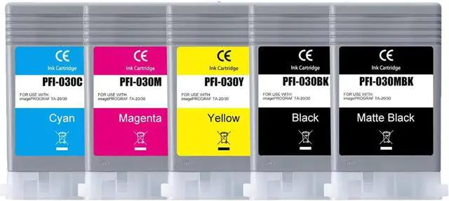 1Pfi-030 ink cartridge set package5 PCS PFI-030 Ink Tank Set(5-Pack, 1Matte Black, 1Black, 1Cyan, 1Magenta, 1Yellow)
