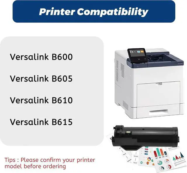 Compatible ModelsEasy to insert and perfectly recognized like original, work as good as OEM toner for Xerox Versalink B600 B605 B610 B615 Printers