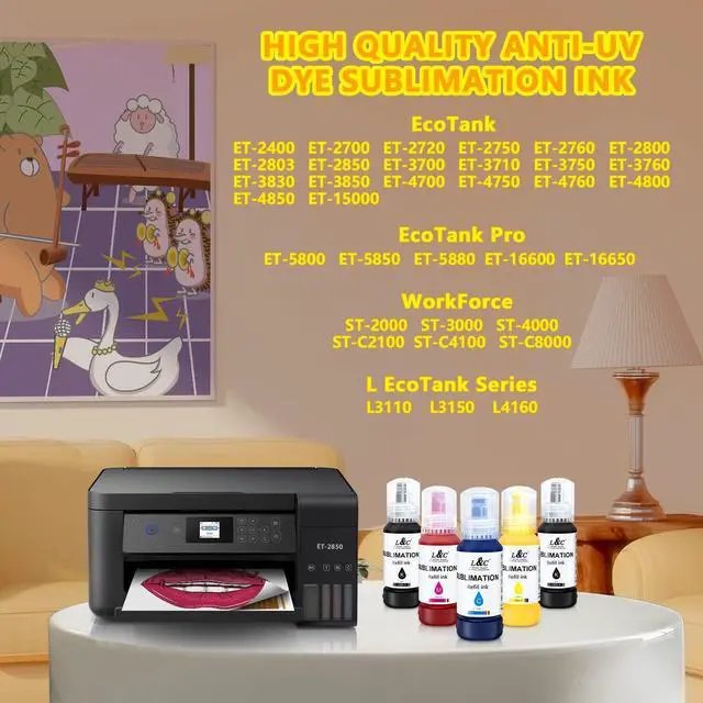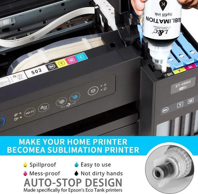 This ItemL&C 500ML Sublimation Ink for Epson Ecotank 2400 ET2800 ET2840 ET2803 ET2720 ET2760 ET2750 ET2850 4800 4850 EcoTank PrinterRecommendationsSublimation Ink for Epson Ecotank 2840 ET-2400 ET-2800 ET-2803 ET-2720 ET-2760 ET-2750 ET2850 ET-15000 EcoTank Printer Sublimation Ink for EcoTank ET-2800 ET-2850 ET-2400 ET-2720 ET-2760 ET-2803 ET-3760 ET-4800 ET-4850 ET-15000 ET-3850 ET-3830, Sublimation Ink for E pson Inkjet Printer (Autofill/ICC-Free/Anti-UV) Hiipoo 500ML Sublimation Ink Refill for ET2400 ET-2720 ET-2760 ET-2800 ET-2803 ET-2850 ET-4800 ET-15000 ET-3760 Inkjet Printer Heat Press Transfer on Mugs T-Shirts Pillows (Upgrade Version) LNKCOS 500ML Sublimation Ink for Epson ET-2400 ET-2800 ET-2803 ET-2840 ET-2720 ET-2750 ET-2760 ET-2850 ET-3830 ET-3850 ET-4700 ET-2820 ET-4800 ET-4850 ET-15000 F170 (ICC-Free/Syringe-Free) Sublimation Ink 400ML Autofill Syringe-Free for Epson ET-2850 ET-2800 ET-3850 ET-4850 ET-4800 ET-2400 ET-2720 ET-2760 ET-2750 ET-2803 ET-3760 ET-3830 ET-4700 ET-5800 ET-15000 Printers (ICC Free)