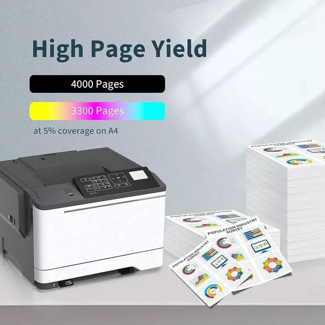 Page Yield: Up to 4,000 Pages per 71B10K0 Toner, 3,000 Pages per color Toner (70C1HC0 70C1HM0 70C1HY0) at 5% coverage of A4 Paper
