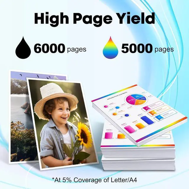 Up to 6,000 pages for black cartridge, 5,000 pages for each color cartridge. (5% coverage of A4/Letter Paper)
