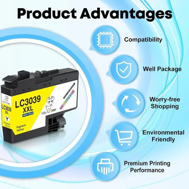 Miss Deer LC3039XXL Compatible Ink Cartridges for Brother LC3039XXL LC3039 XXL LC3037 LC3037XXL with Latest Chips (Non-OEM)