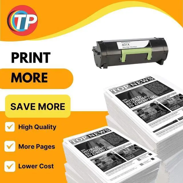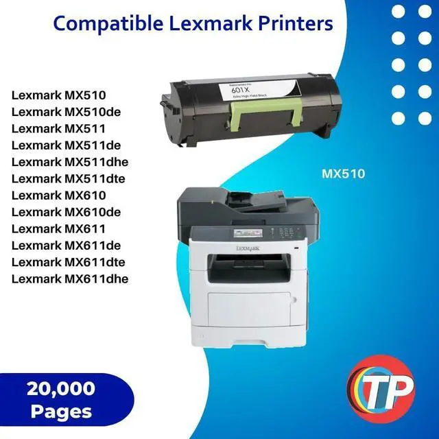 Expertly replace your printer's black toner with the Replacement for Lexmark 60F1X00 601X Toner Cartridge. Specifically designed for Lexmark MX510, MX511, MX610, and MX611 Printer models.
