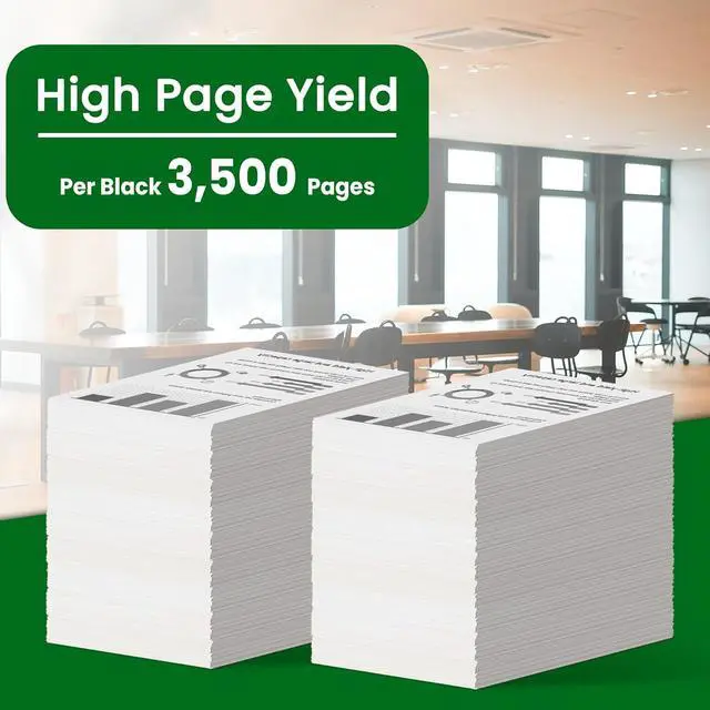 Cartridge yield (approx.): Up to 3,500 pages per Black cartridges, at 5% coverage (Letter/A4).