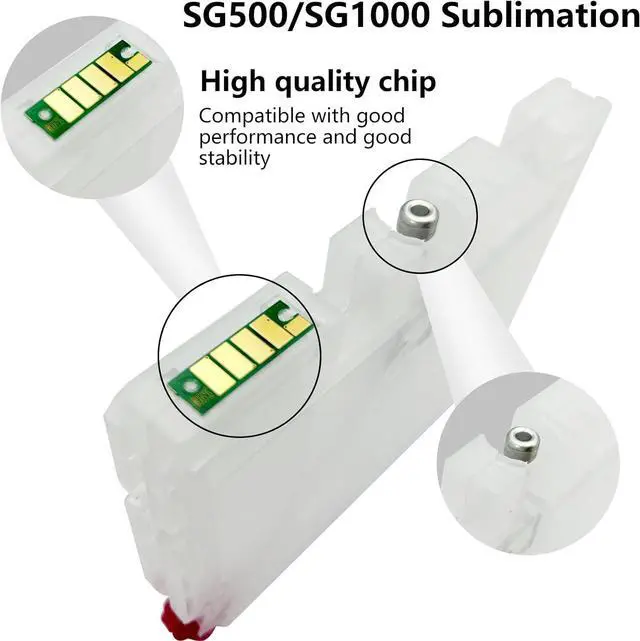 This ItemHEMEINY Empty Refillable Ink Cartridges Compatible with Sublijet Virtuoso Sawgrass SG500 and SG1000 Printer, with One Time ChipsRecommendationsHiipoo 500ML Sublimation Ink Refill for ET2400 ET-2720 ET-2760 ET-2800 ET-2803 ET-2850 ET-4800 ET-15000 ET-3760 Inkjet Printer Heat Press Transfer on Mugs T-Shirts Pillows (Upgrade Version) Heat Transfer Printer Ink sublijets hd Ink Compatible with Sawgrass Virtuoso sg400 sg800 sg400NA/EU sg800NA/EU RICOH GC41 SG2010 SG2100N SG3100 SG3100SF SG3100SNW SG3110DN SG3110DNW SG3120SF SG7100 SG7100DN Sublimation Ink use for Refillable Cartridges or CISS Sublimation Ink for EcoTank ET-2800 ET-2850 ET-2400 ET-2720 ET-2760 ET-2803 ET-3760 ET-4800 ET-4850 ET-15000 ET-3850 ET-3830, Sublimation Ink for E pson Inkjet Printer (Autofill/ICC-Free/Anti-UV) Hiipoo 502 522 Refill Ink Bottle Replacement for Epson 502 522 (Not for Sublimation) for ET-2750 ET2720 ET-2803 ET-2800 ET-3750 ET-4750 ET-3760 ET-4760 ET-2850 ET-4800 ET-3700 ET-15000 Printer Hiipoo Sublimation Ink Refilled Bottles Work with WF7710 ET2760 ET2720 ET2803 ET2800 C88+ XP-4105 Inkjet Printer Heat Press Transfer on Mugs Plates T-Shirts Pillows Phone CaseB/C/M/Y