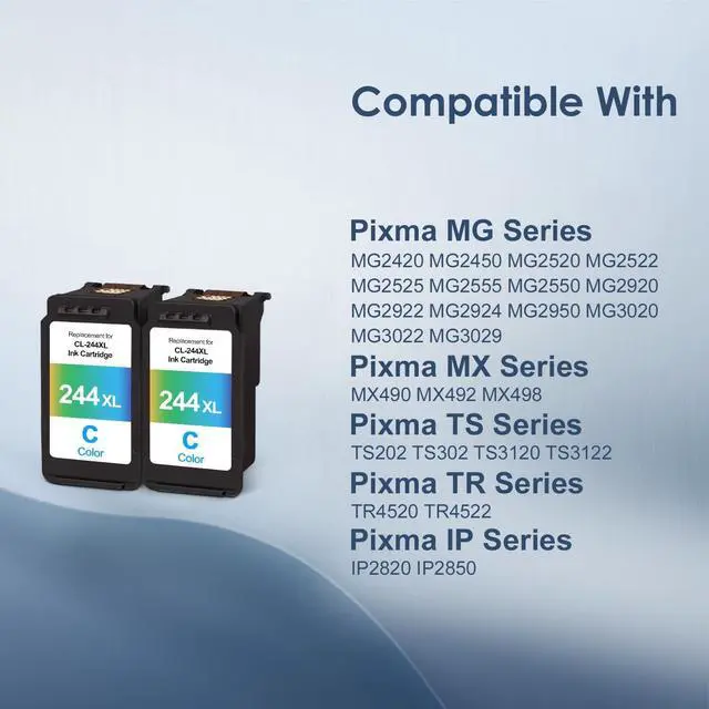FOR 244XL INK CARTRIDGES COMPATIBLE PRINTERSfor Pixma MG2420 MG2450 MG2520 MG2522 MG2525 MG2555 MG2550 MG2920 MG2922 MG2924 MG2950 MG3020 MG3022 MG3029 MX490 MX492 MX498 TS202 TS302 TS3120 TS3122 TR4520 TR4522 IP2820 IP2850 printers