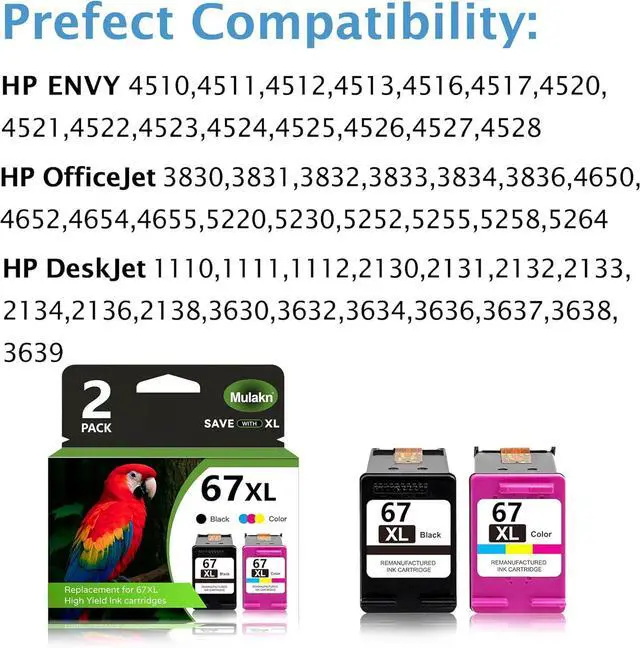 Experience superior printing performance with our Mulakn 67XL Ink Cartridges designed for HP Ink 67 HP 67XL printers. This combo pack includes one black and one color cartridge, perfect for all your printing needs.