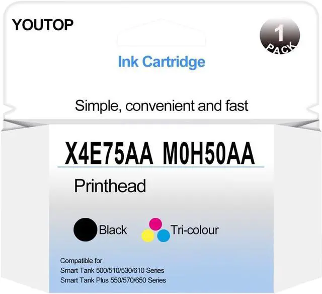 YOUTOP X4E75AA + M0H50AA PrintHead Smart Tank Plus Tri-Color|Black Print Head Use for 517 532 617 515 508 510 511 518 519 531 538 610 618 550 570 650 Printer