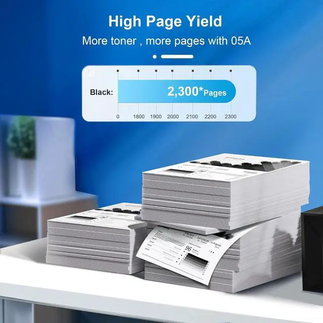 Prints up to 2,300 pages per replacement for HP 05a toner cartridge black at 5% coverage of A4 paper