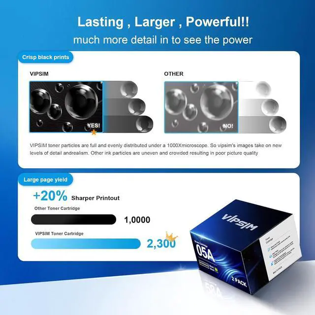Reasons to choose VIPSIM 05A CE505A toner cartridge replacements for HP 05a ce505a toner cartridge: