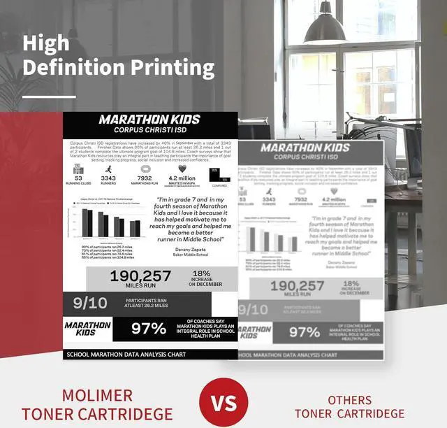 MOLIMER Toner Cartridges the quality of prints clearly smoothly crisp dark sharp,