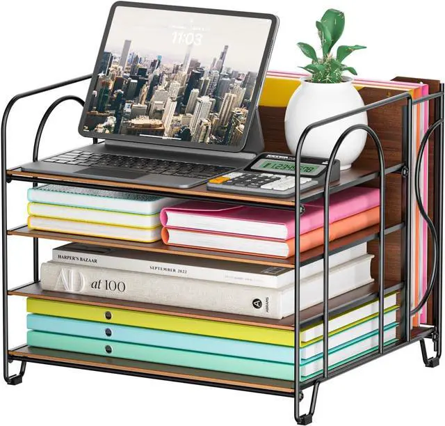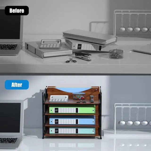Multi-scene UsageThe desk file organizer top is great for storing small accessories, the vertical hanging section helps you store A4 or Letter folders; the sliding MDF tray holds letters, stationery, and desk accessories. The paper organizer for desk becomes ideal not only for offices, but also for scenarios such as schools, homes, and more.
