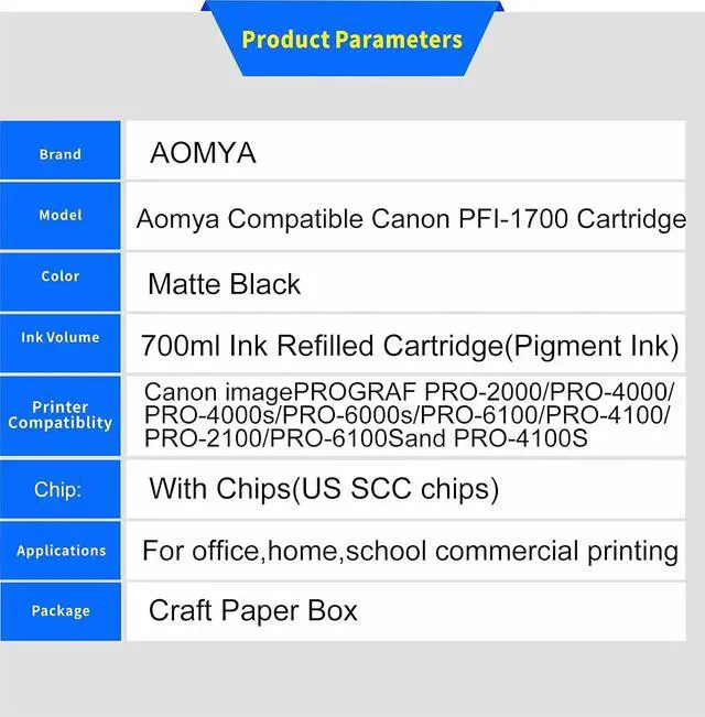 Aomya PFI-1700 Compatible Ink Cartridge