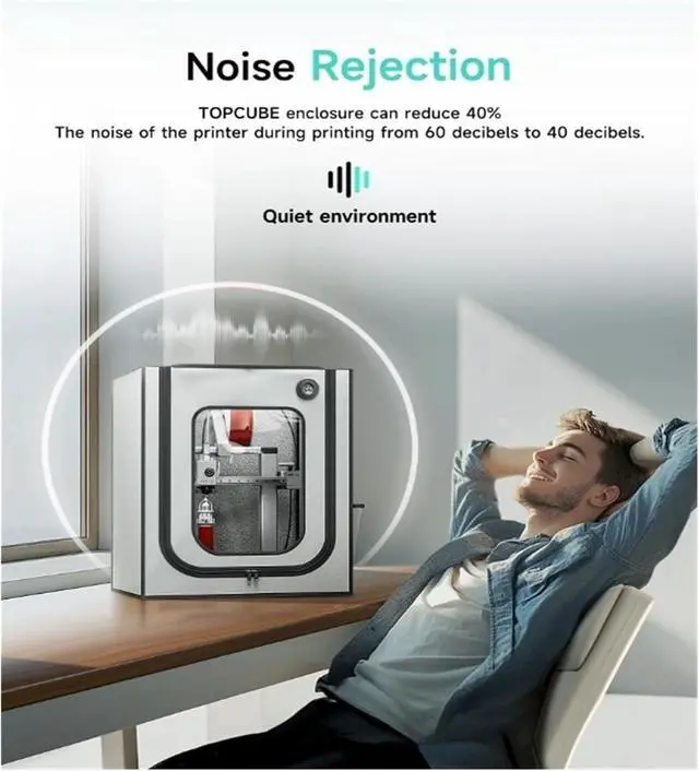 Noise Isolation for Quiet Creations: The fully enclosed 3D printer cover effectively blocks printing noise transmission on all sides. Through testing, the noise level can be reduced from 60 decibels to 40 decibels, enabling a quieter printing experience.