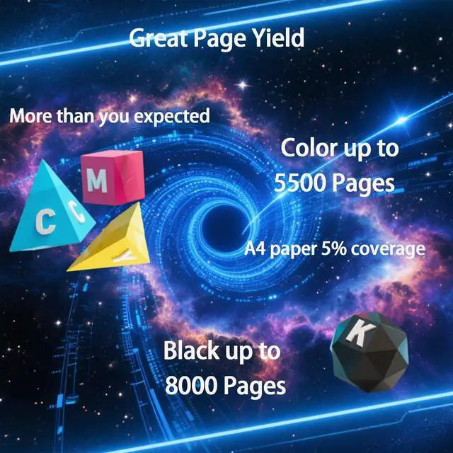 Our Toner Cartridges It can print continuously for a long time, reduce the number of replacements, and improve office efficiency. Each product can print up to 8000 pages in black. Each product can print up to 5500 pages in colorA4 size, 5% coverage