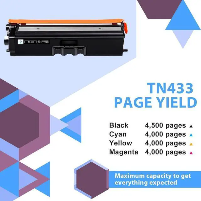 Include: 1 x Black TN433BK Toner, 1 x Cyan TN433C Toner, 1 x Magenta TN433M Toner, 1 x Yellow TN433Y Toner 4 Packs for Brother HL-l8360cdw Toner