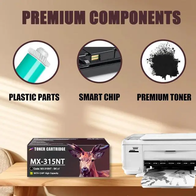Our advantages: MX-315NT toner cartridge has a built-in precision smart chip that can accurately monitor the toner level.it has undergone rigorous testing, and features leak-proof reliability and smooth printing