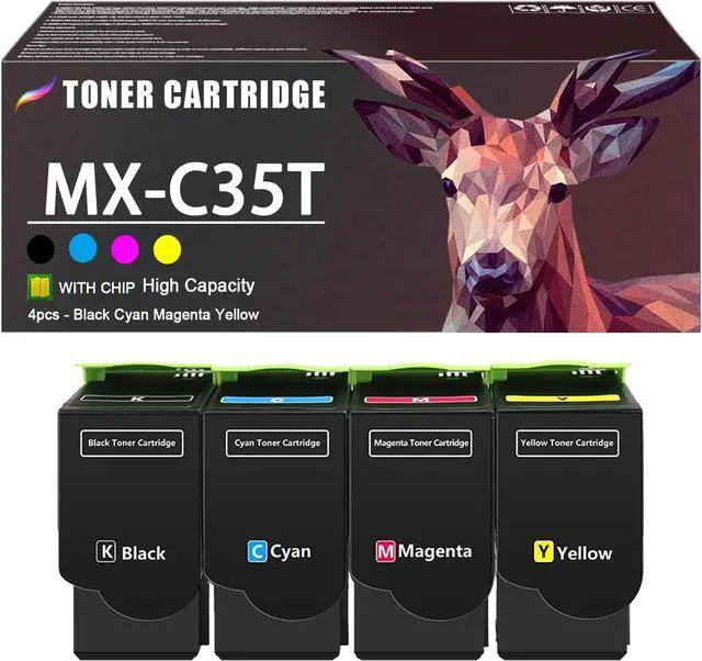 Package Contents: 1 pack MX-C35T black,1 pack MX-C35TC cyan,1 pack MX-C35TM magenta,1 pack MX-C35TY yellow toner cartridges