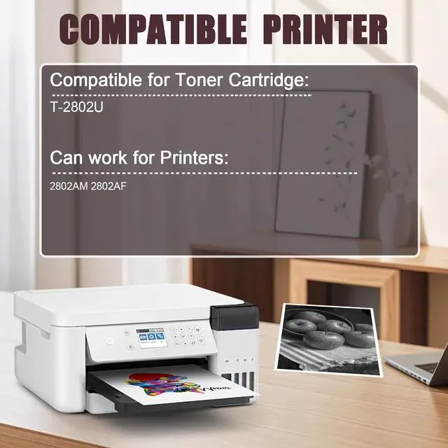 Our advantages: T-2802U black toner cartridge has a built-in precision smart chip that can accurately monitor the toner level.it has undergone rigorous testing, and features leak-proof reliability and smooth printing