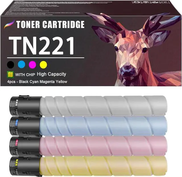 Package Contents: 1 pack TN221 A8K3130 black,1 pack A8K3430 cyan,1 pack A8K3330 magenta,1 pack A8K3230 yellow toner cartridges