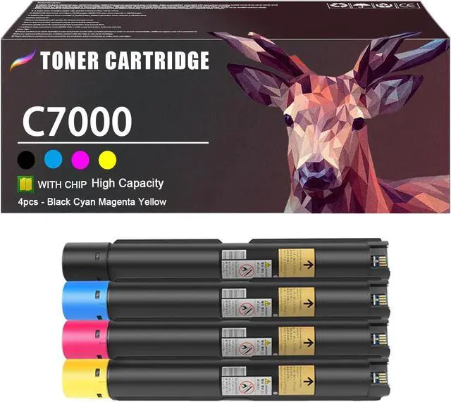 Package Contents: 1 pack C7000 black, 1 pack 106R03764 cyan, 1 pack 106R03763 magenta, 1 pack 106R03762 yellow toner cartridges