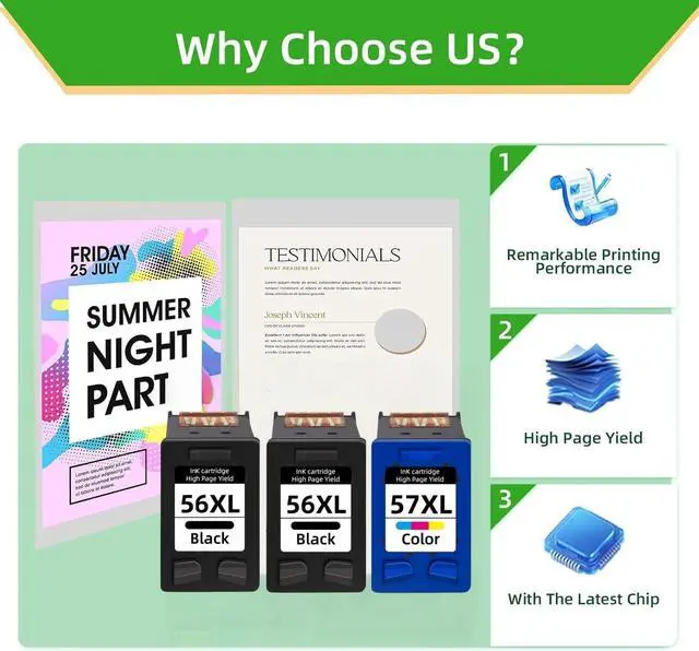 VALUE PACK - Package includes 2 pack 56XL black ,1pack 57XL color replacement ink cartridge for HP printers,