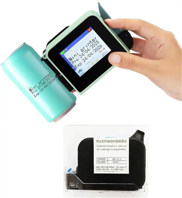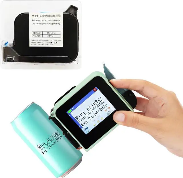 Achieve professional coding with this handheld inkjet printer, texts and graphics on surfaces including metal cans, packaging, and corrugated boxes