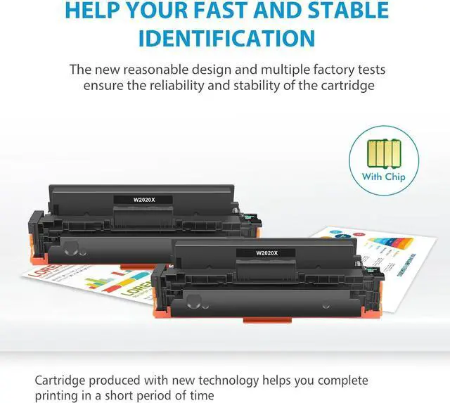 Superior quality: High-efficiency 414X with chips toner to get the clear text and vivid color printing. These 414X toner cartridges are alread installed with orginal chips, No need to transfer orginal 414X toner chip to them