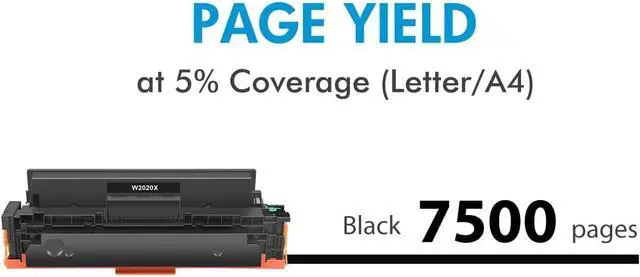 High Page Yield: Up to 2 x 7,500 Pages per 414X W2020X Black Toner Cartridges (Letter/A4, at 5% Coverage)