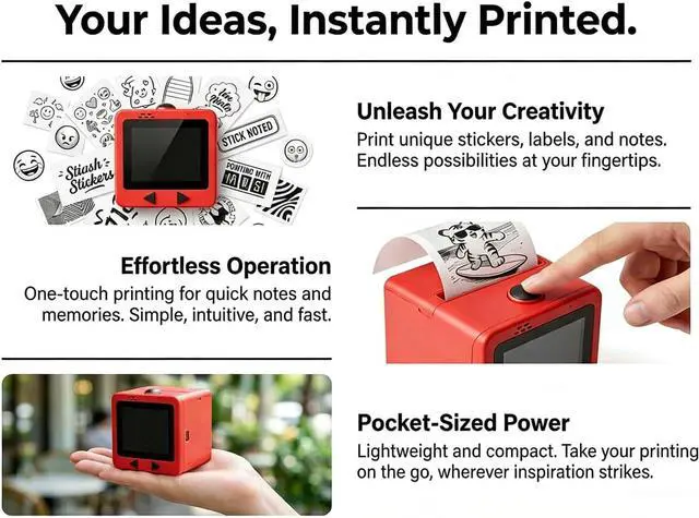 This portable AI voice-to-sticker printer offers effortless creation of custom stickers with just your voice. Compact and rechargeable, its perfect for on-the-go printing in various settings, providing versatility and creativity in one easy-to-use device.